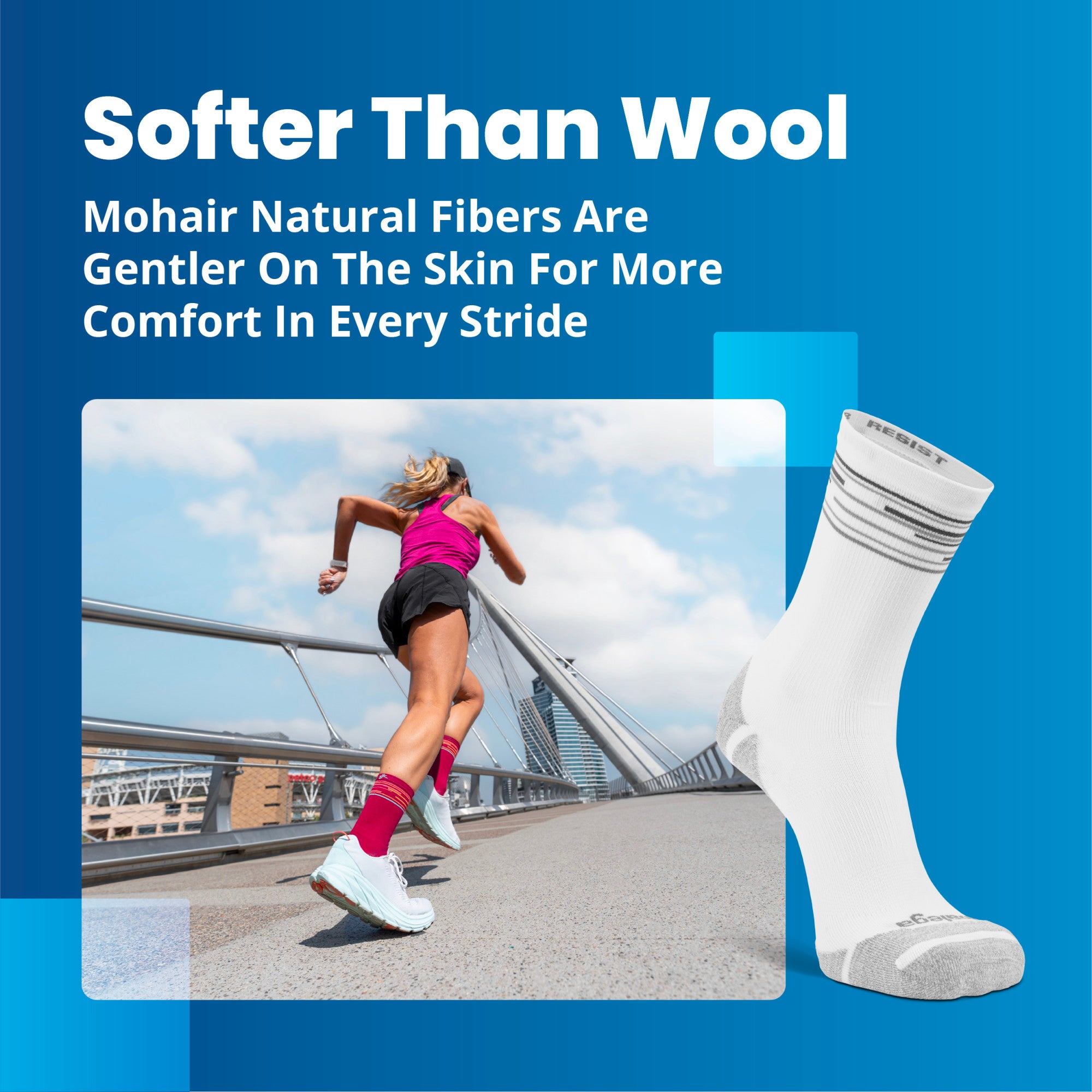 The perfect blend of nature and technology, Blister Resist Quarter socks combine mohair fiber and Drynamix to keep feet cool and dry throughout every activity. Drynamix wicks moisture away from the skin, while mohair holds moisture keeping feet warm in the winter and cool in the summer. Blister Resist socks have been race tested and feature a hand linked seamless toe to eliminate abrasion across the top of the foot for maximum comfort. The extra deep heel pocket ensures a perfect fit and the enhanced elastic grip construction provides additional no-slip security to prevent the sock from sliding down the foot during physical activity.