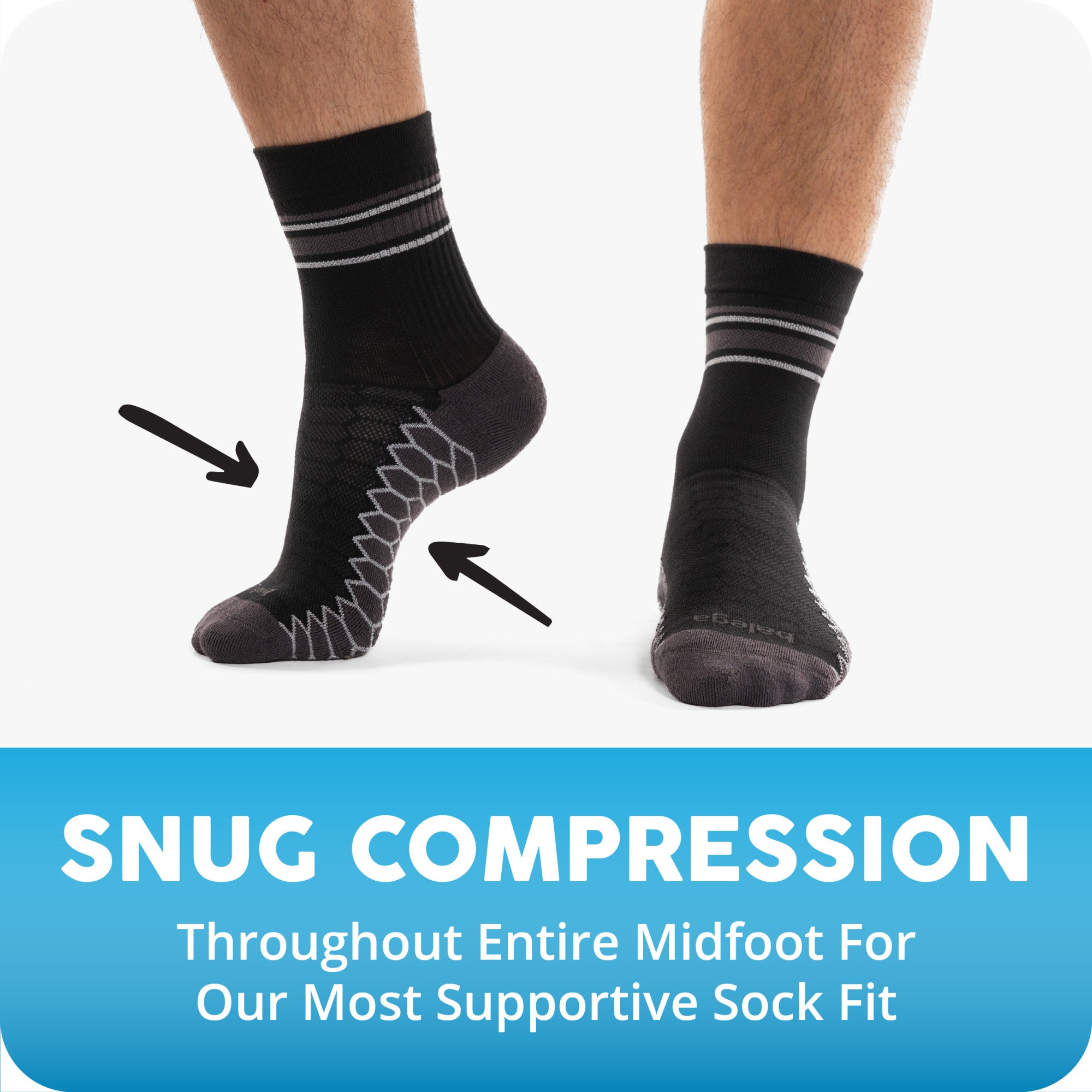 • Ensures perfect fit with compression sock arch support bands and extra-deep heel pocket.